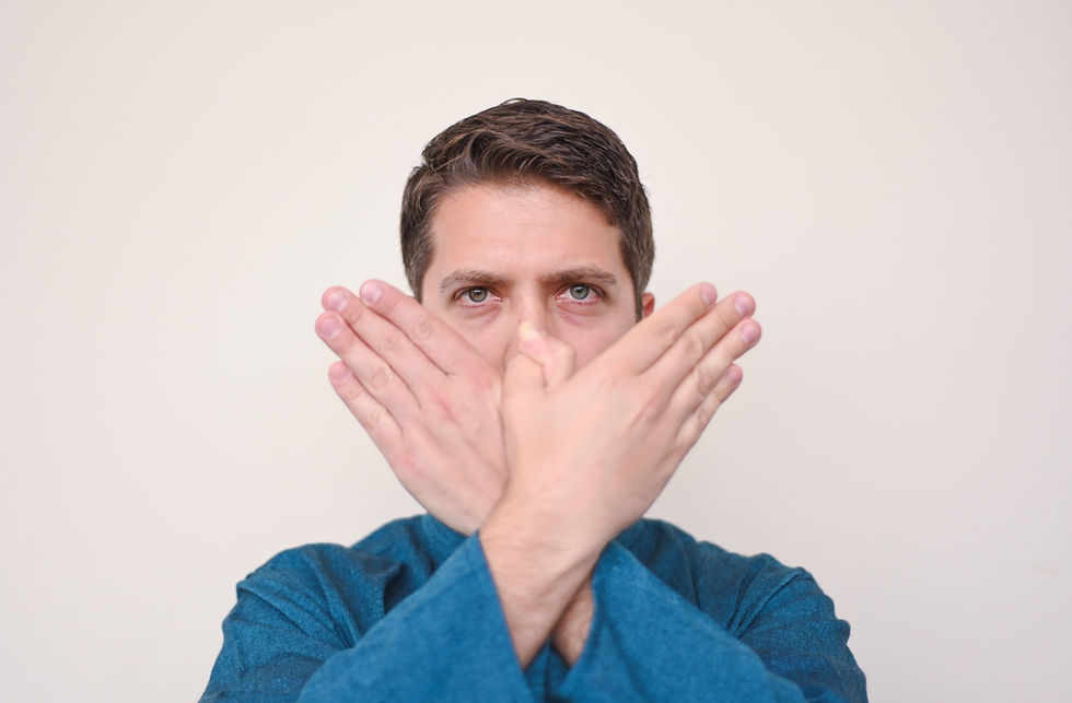In Polansky's piece, I perform three things simultaneously. I sign alongside Veditz in real time. I speak fragmented portions of the English text. And I play percussion. I sign left-handed while Veditz signs right-handed, so we're mirrored. I also tend to sign slightly ahead of him in order to give myself time to pick up mallets, which means the audience sees a visual canon, where my signs arrive first and his follow.